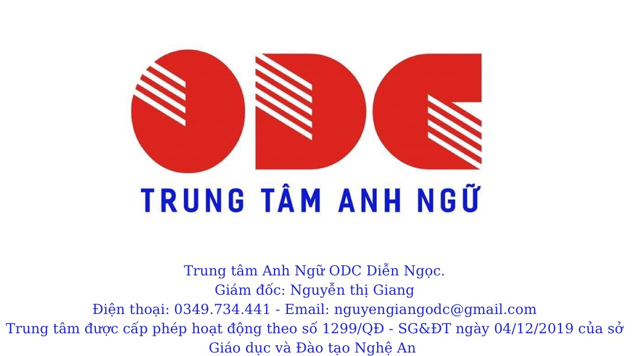 .Tại trung tâm anh ngữ ODC Diễn Ngọc , chúng tôi có tất cả khoá học Tiếng Anh cho tất cả độ tuổi từ mầm non cho tới độ tuổi đi làm. Với đội ngữ giáo viên tâm huyết, yêu nghề, đầy đam mê và trình độ đại học trở lên, tập thể ODC mong muốn là địa điểm hoc tập Tiếng Anh tin cậy cho tất cả mọi học sinh.